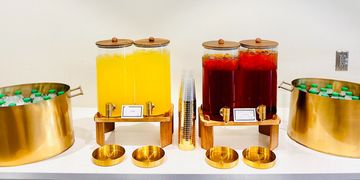 ASSORTED BEVERAGE STATION INCLUDES: ICE TEA, LEMONADE, BOTTLED WATERS
