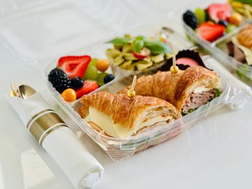 Your choice of: Oven Roasted Turkey, Chicken, Roast Beef or Pastrami paired with Spring Mix, Cheese and sundried tomato mayo spread in a Fresh Croissant