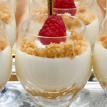 Toasted shredded phyllo dough layered with a spiced cheesecake