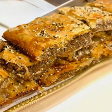 Layers of buttered phyllo dough and a spiced ground beef creating bites of heaven